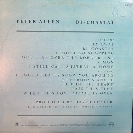 Peter Allen - Bi-Coastal (LP, Album, RE) (Good Plus (G+))