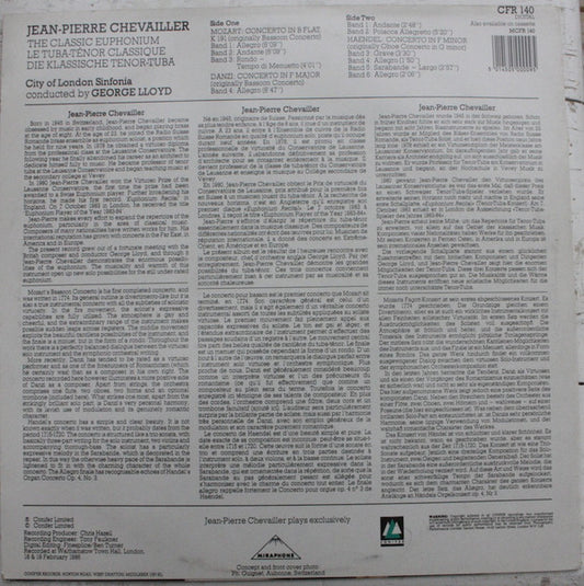 Jean-Pierre Chevallier Plays Concertos By Wolfgang Amadeus Mozart, Franz Danzi, Georg Friedrich Händel, City Of London Sinfonia Conducted By George Lloyd - Jean-Pierre Chevallier Plays Concertos By Mozart Danzi Haendel (LP, Album) (Very Good Plus (VG+))