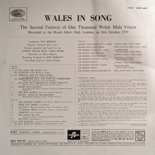 Various - Wales In Song - The Second Festival Of 1000 Welsh Male Voices (LP) (Very Good Plus (VG+))