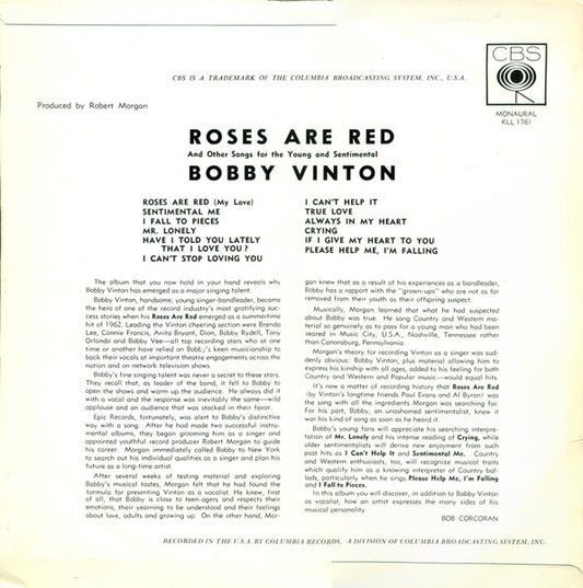 Bobby Vinton - Roses Are Red (LP, Album, Mono) (Poor (P))