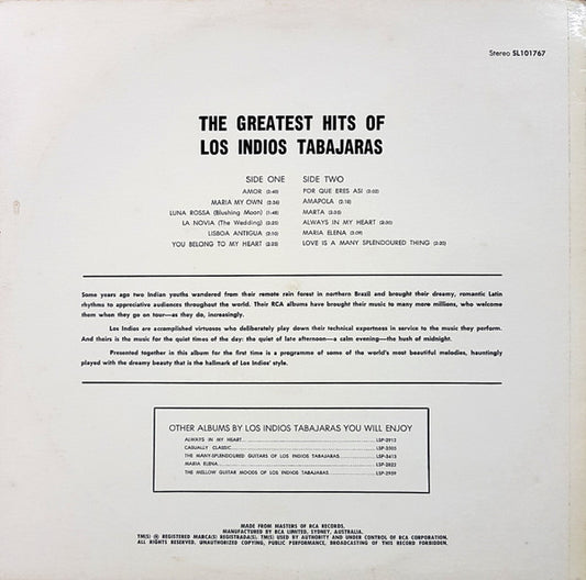 Los Indios Tabajaras - The Greatest Hits Of Los Indios Tabajaras (LP, Comp) (Good Plus (G+))