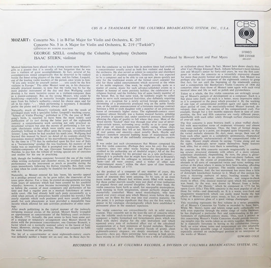 Mozart*, Isaac Stern, George Szell, The Columbia Symphony Orchestra* - Mozart Violin Concertos (LP) (Very Good Plus (VG+))