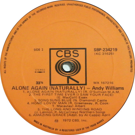Andy Williams - Alone Again (Naturally) (LP, Album) (Very Good Plus (VG+))