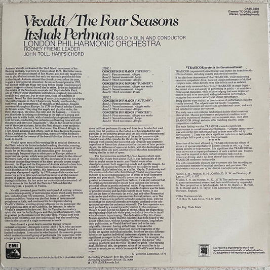 Vivaldi* - Itzhak Perlman, London Philharmonic Orchestra - The Four Seasons (LP, Album, Quad, Ltd) (Very Good Plus (VG+))