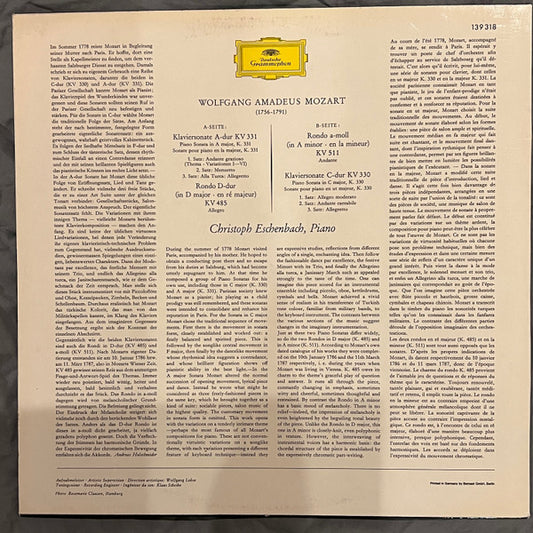 Wolfgang Amadeus Mozart • Christoph Eschenbach - Sonaten A-Dur KV 331 • C-Dur KV 330 / Rondo D-Dur KV 485 • A-Moll KV 511 (LP, RE, RP) (Very Good Plus (VG+))
