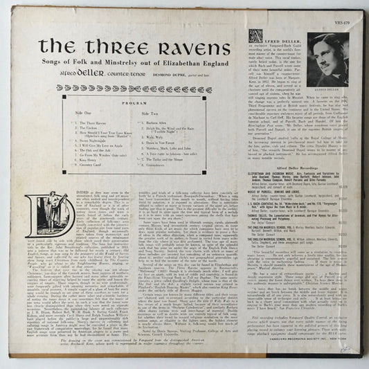Alfred Deller With Desmond Dupré - The Three Ravens (Songs Of Folk And Minstrelsy Out Of Elizabethan England) (LP, Album) (Good Plus (G+))