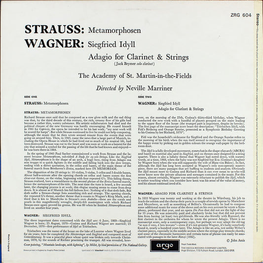 Strauss* / Wagner* - Academy Of St. Martin-in-the-Fields*, Neville Marriner* - Metamorphosen / Siegfried Idyll (LP, RP) (Very Good Plus (VG+))