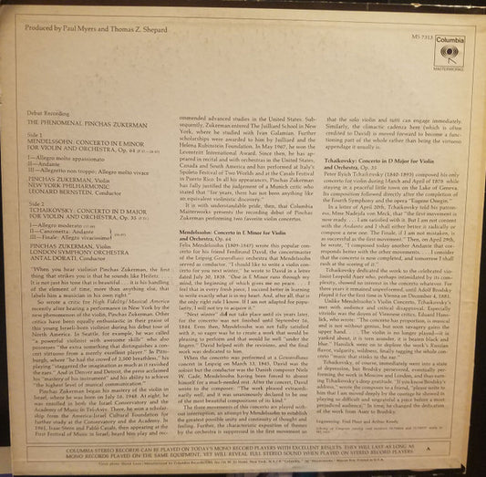 Pinchas Zukerman - Felix Mendelssohn-Bartholdy, Pyotr Ilyich Tchaikovsky - Violin Concertos (LP, RP) (Good Plus (G+))