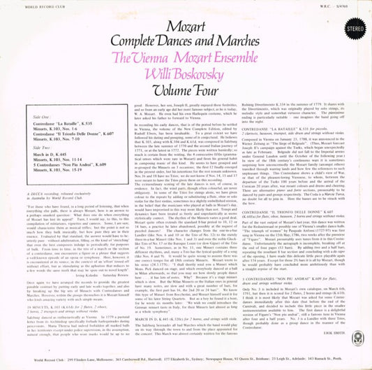 Mozart* - Vienna Mozart Ensemble*, Willi Boskovsky - Complete Dances And Marches - Volume Four (LP, Album, Club) (Very Good Plus (VG+))