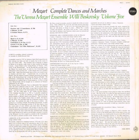 Mozart* - Vienna Mozart Ensemble*, Willi Boskovsky - Complete Dances And Marches - Volume Five (LP, Album, Club, RE) (Very Good Plus (VG+))