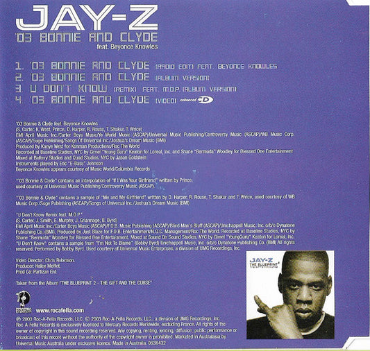 Jay-Z Feat. Beyoncé Knowles - '03 Bonnie And Clyde (CD, Maxi, Enh) (Very Good Plus (VG+))