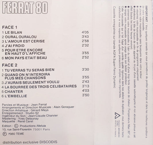 Jean Ferrat - Ferrat 80 (Cass, Album) (Very Good Plus (VG+))