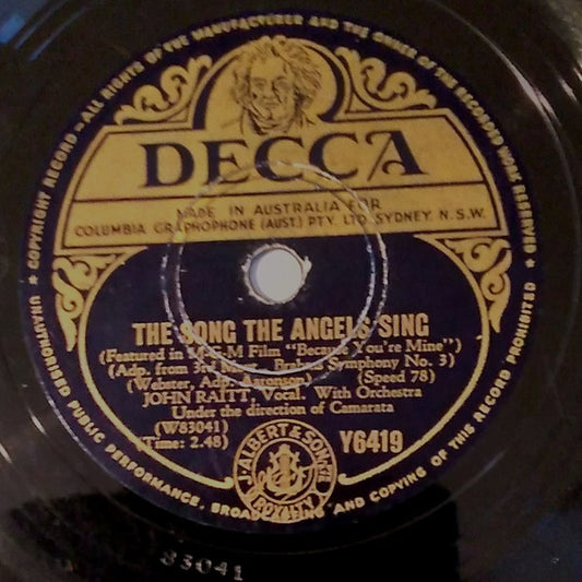 John Raitt - The Song The Angels Sing/Because You're Mine (Shellac, 10", Single) (Very Good (VG))