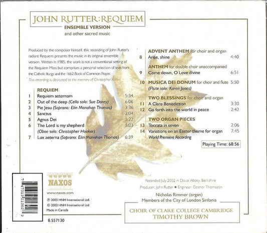 John Rutter – The Choir Of Clare College, Timothy Brown - Requiem And Other Sacred Music (CD, Album) (Very Good Plus (VG+))