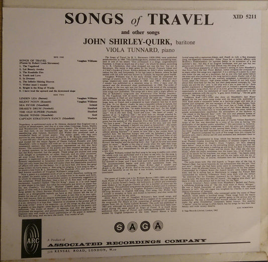 John Shirley-Quirk, Viola Tunnard, Vaughan Williams* - Songs Of Travel And Other Songs (LP, Mono) (Very Good Plus (VG+))