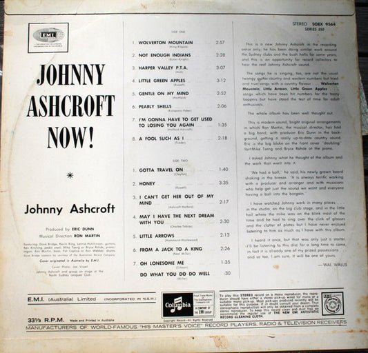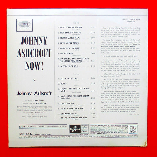 Johnny Ashcroft Now Vinyl Album LP 1969 Australian Folk Country