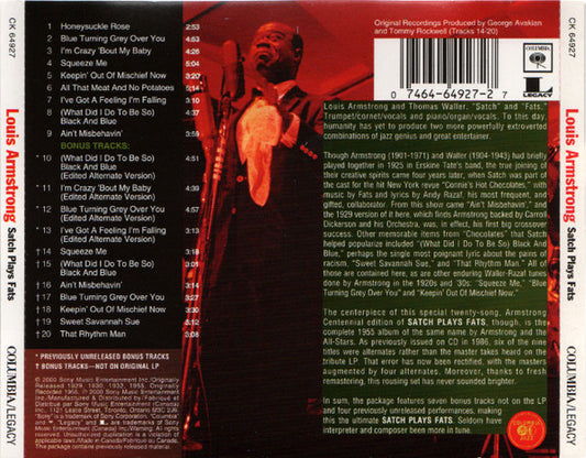 Louis Armstrong And His All-Stars - Satch Plays Fats: A Tribute To The Immortal Fats Waller By Louis Armstrong And His All-Stars (CD, Album, RE, RM) (Very Good Plus (VG+))