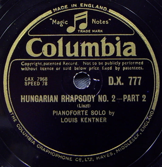 Louis Kentner - Hungarian Rhapsody No.2 (Shellac, 12") (Very Good Plus (VG+))