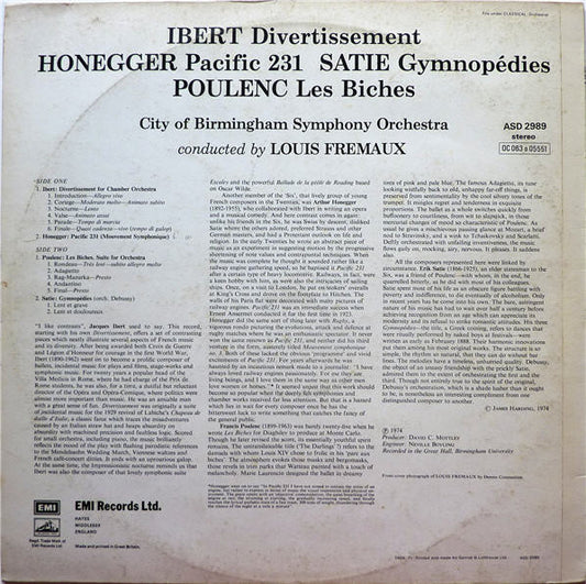 Louis Frémaux Conducts City Of Birmingham Symphony Orchestra - Divertissement / Les Biches / Pacific 231 / Gymnopédies 1 & 3 (LP, B&W) (Very Good Plus (VG+))