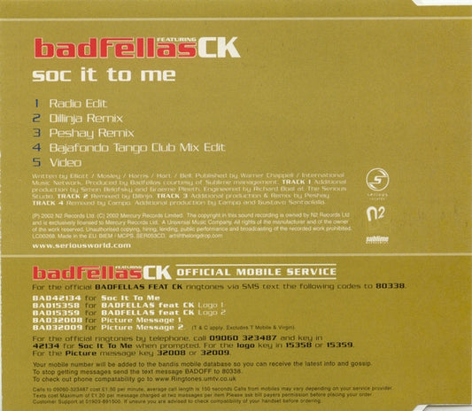 Badfellas Featuring Clive King - Soc It To Me (CD, Single, Enh) (Very Good Plus (VG+))