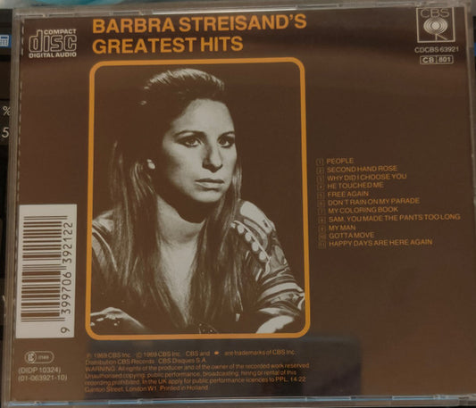Barbra Streisand - Barbra Streisand's Greatest Hits (CD, Comp, RE) (Very Good Plus (VG+))