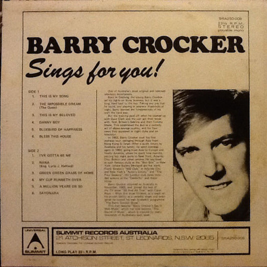 Barry Crocker - Sings For You! (LP) (Very Good Plus (VG+))