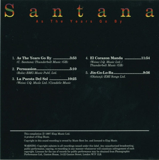 Santana - As The Years Go By (CD, Comp, RP) (Very Good Plus (VG+))