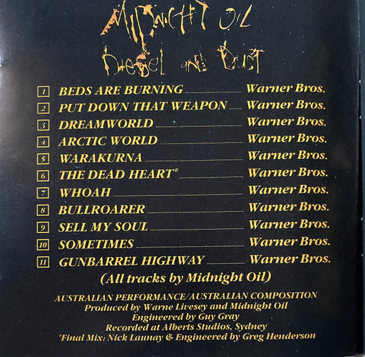 Midnight Oil - Diesel And Dust (CD, Album) (Very Good Plus (VG+))