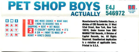 Pet Shop Boys - Actually (Cass, Album) (Very Good Plus (VG+))