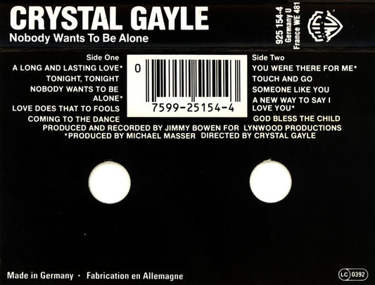 Crystal Gayle - Nobody Wants To Be Alone (Cass, Album) (Very Good Plus (VG+))