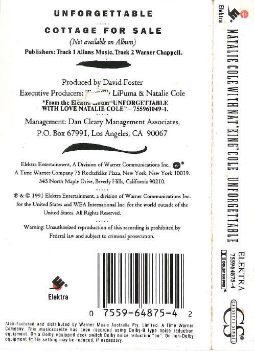 Natalie Cole With Nat King Cole - Unforgettable (Cass, Single) (Very Good Plus (VG+))