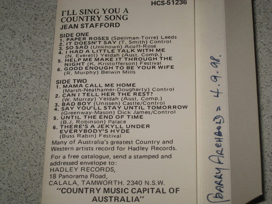 Jean Stafford - I'll Sing You A Country Song (Cass, Album) (Very Good Plus (VG+))