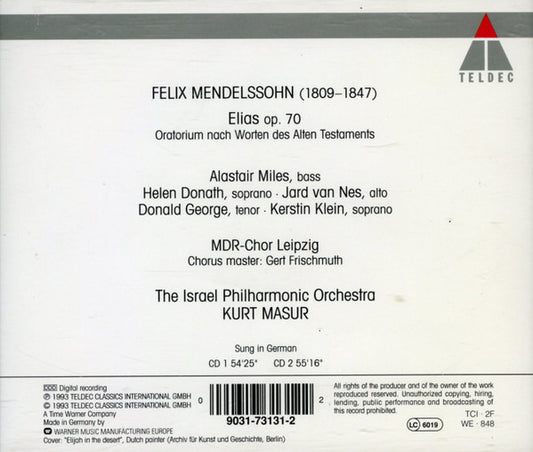 Alastair Miles, Israel Philharmonic Orchestra, Kurt Masur, Felix Mendelssohn-Bartholdy - Elias Op. 70 (2xCD, Album) (Very Good Plus (VG+))