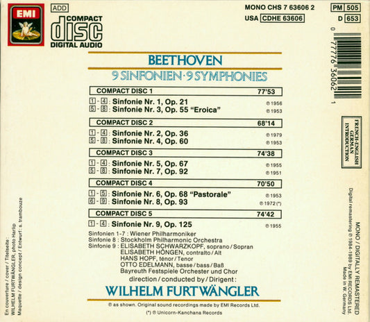 Ludwig van Beethoven, Wilhelm Furtwängler - 9 Sinfonien = 9 Symphonies (5xCD, Mono, RM + Box, Comp) (Very Good Plus (VG+))