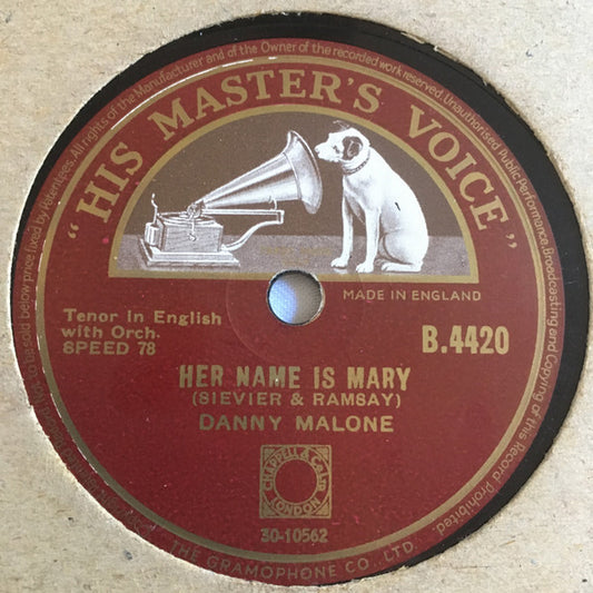 Danny Malone - When Irish Eyes Are Smiling / Her Name Is Mary (Shellac, 10") (Very Good Plus (VG+))