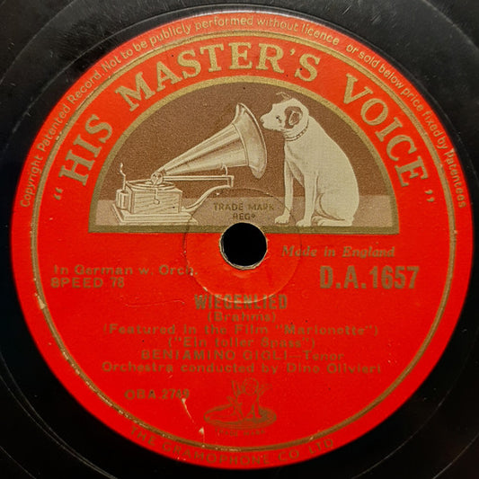 Beniamino Gigli - Du Bust Mein Glück / Notte A Venezia (Shellac, 10") (Very Good Plus (VG+))
