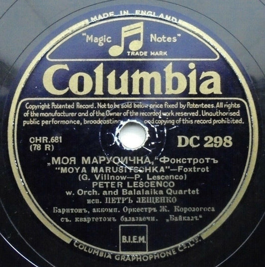 Петр Лещенко - Капризная, Прямая... / Моя Марусечка (Shellac, 10") (Very Good Plus (VG+))