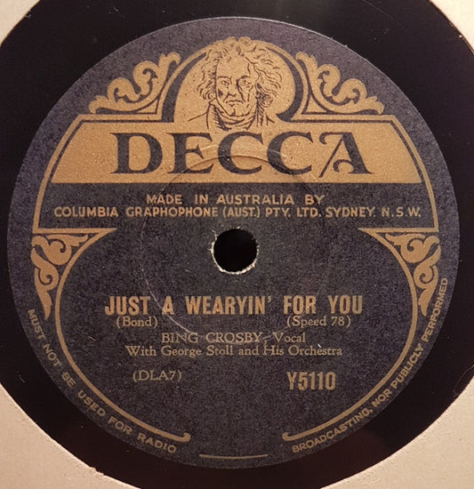 Bing Crosby With Georgie Stoll & His Orchestra - I Love You Truly / Just A Wearyin' For You (Shellac, 10") (Very Good Plus (VG+))