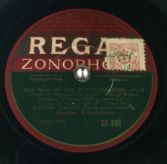 Walter O'Keefe - The Man On The Flying Trapeze (Shellac, 10") (Very Good Plus (VG+))