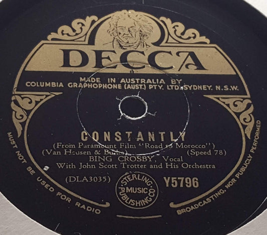 Bing Crosby, John Scott Trotter And His Orchestra - Moonlight Becomes You / Constantly (Shellac, 10") (Very Good Plus (VG+))