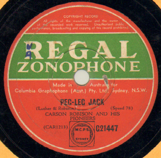 Carson Robison And His Pioneers - Cross-Eyed Sue / Peg-Leg Jack (Shellac, 10") (Very Good Plus (VG+))