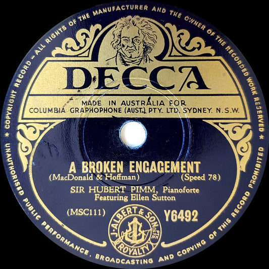 Sir Hubert Pimm Featuring Ellen Sutton - Back In The Good Old Days / A Broken Engagement (Shellac, 10") (Very Good Plus (VG+))