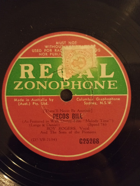 Roy Rogers , The Sons Of The Pioneers - Blue Shadows On The Trail / (There'll Never Be Another) Pecos Bill (Shellac, 10") (Very Good (VG))