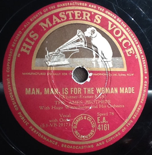 The Ames Brothers With Hugo Winterhalter's Orchestra And Chorus - The Man With The Banjo / Man, Man, Is For The Woman Made (Shellac, 10") (Very Good Plus (VG+))