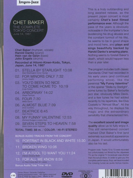 Chet Baker - The Complete Tokyo Concert, June 14, 1987 (DVD-V) (Very Good Plus (VG+))