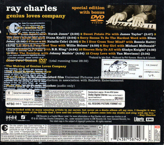 Ray Charles - Genius Loves Company (CD, Album, Copy Prot., Ltd, Spe + DVD, NTSC, Dol) (Very Good Plus (VG+))