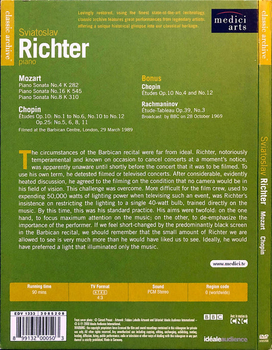 Sviatoslav Richter - Mozart*, Chopin* - Piano (DVD-V, NTSC, Reg) (Mint (M))