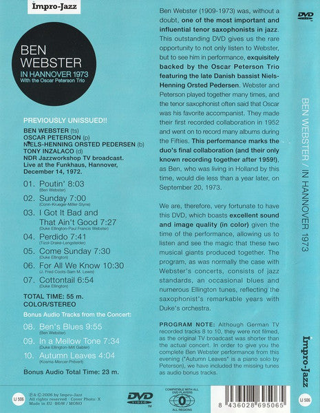 Ben Webster With The Oscar Peterson Trio - In Hannover 1973 (DVD-V, Album, Mono, Col) (Very Good Plus (VG+))