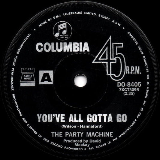 The Party Machine - Gentle Art / You've All Gotta Go (7", Single) (Good Plus (G+))