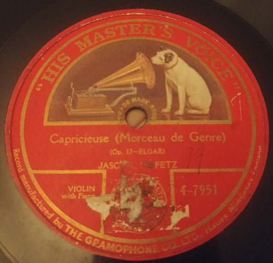 Jascha Heifetz - Capricieuse (Morceau De Genre) (Shellac, 10", S/Sided) (Very Good Plus (VG+))